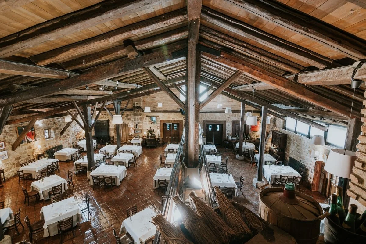 We trade vines for city energy as we head to Bilbao, where the titanium curves of the Guggenheim and its bold contemporary art collections set the stage for a morning of pure visual stimulation. Lunch is at Nerua Guggenheim Bilbao, the museum’s own Michelin-starred restaurant, where chef-driven tasting menus turn seasonal Basque ingredients into modern, artful plates that feel perfectly in sync with the building around you. We then return to Rioja for a brief reset at the hotel, maybe even a cocktail, then back up to the walled hilltop village of Laguardia for dinner at Mayor de Migueloa—a historic palace turned restaurant where stone walls, intimate rooms, and beautifully prepared dishes give the evening a softly lit, old-world glow.