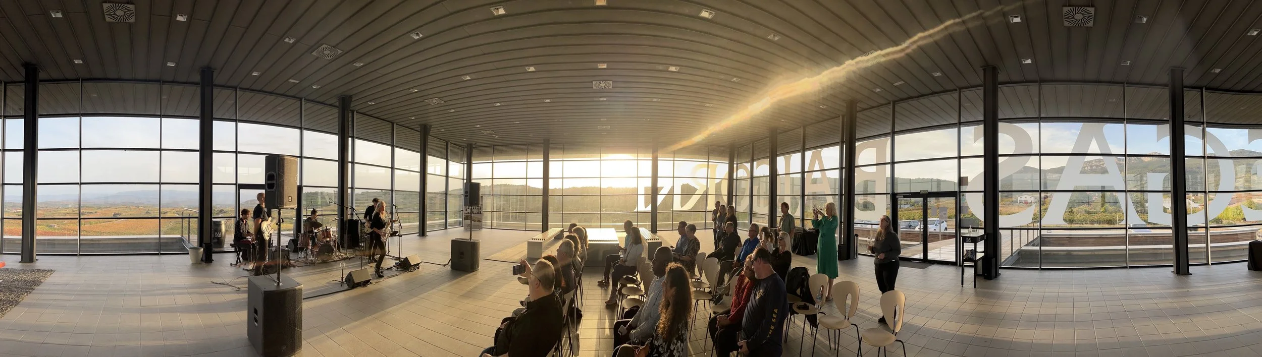 The morning. lunch and early afternoon are yours. We provide shuttles to and from the walled hilltop village of Laguardia, where you can explore ancient tunnels, drop into tiny wine bars, linger over a casual lunch, shop for local specialties and get lost in its medieval streets at your own pace. Late afternoon, we regroup for a private tasting at Remírez de Ganuza, one of Rioja’s most prestigious and meticulous producers. Then it’s back to the hotel to dress for the grand finale: a Champagne and cocktail reception with Eric, followed by an unforgettable night at Bodega Bilbaínas. You’ll watch Mindi’s final show from a dramatic glass-walled cube suspended above the winery, with the patchwork vineyards of Rioja spread out below. After the concert, we descend six floors into the historic cellars for an intimate dinner and tasting—a true last chapter in the story of Rioja.