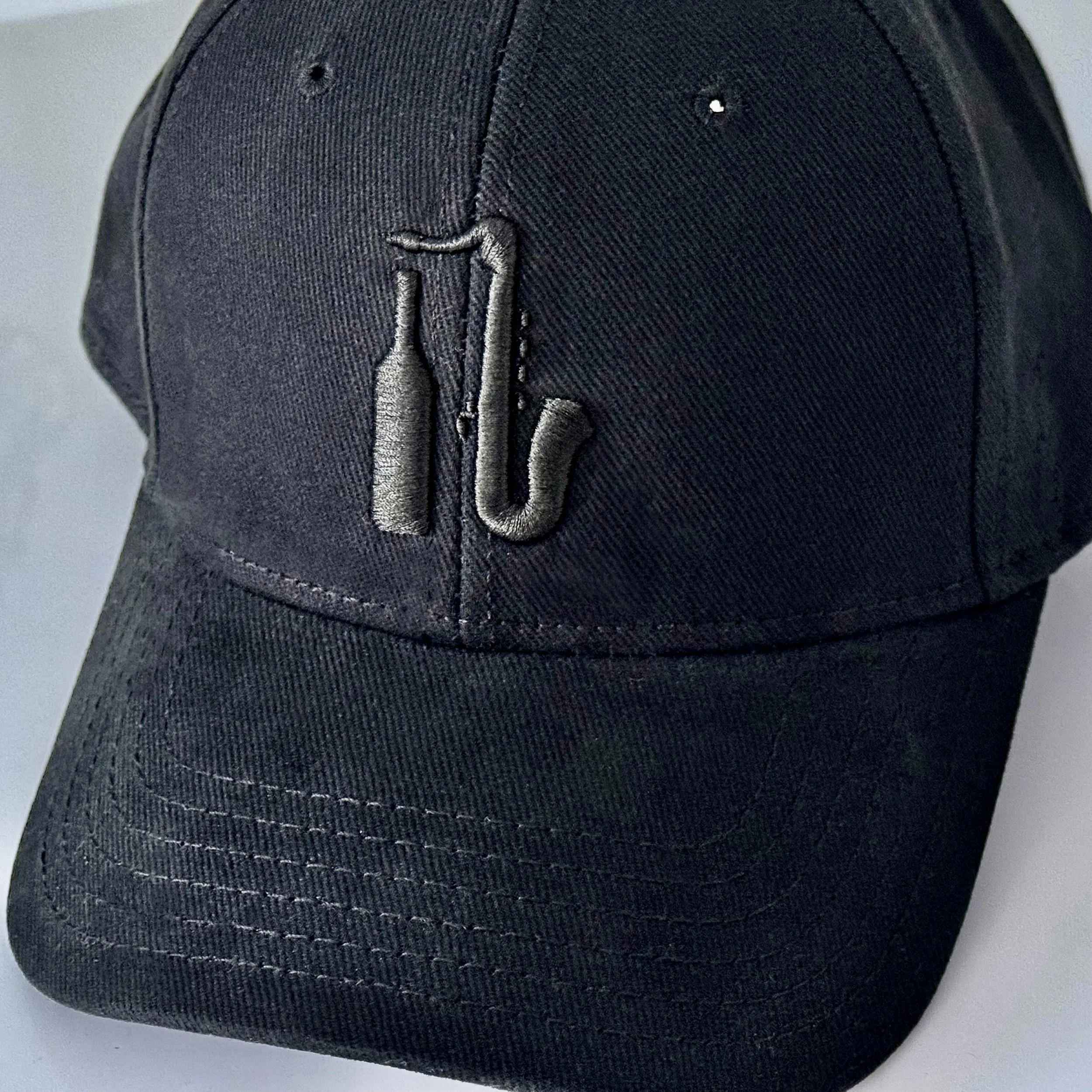 Elevate your everyday style with our ultra-clean black cap, designed with tone-on-tone embroidery of our new sax-and-bottle icon for a sophisticated, understated look. This high-quality piece also features our WINEandJAZZ.com mark on the back and an adjustable strap for universal comfort. Perfect for anyone who lives the rhythm—sip, savor, repeat.